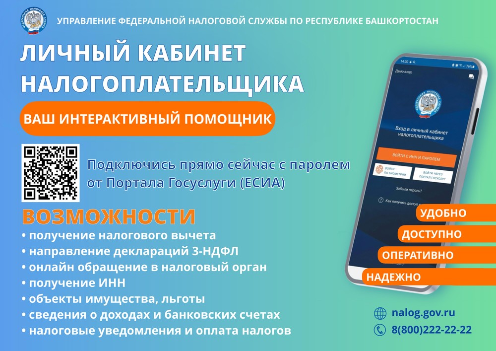 Федеральная налоговая служба по Республике Башкортостан предлагает новую услугу интерактивный помощник. Подключившись через ГОсуслуги вы получите возможность: - получения налогового вычета; - направления деклараций 3-НДФЛ; - онлайн обращения в налоговый орган; - получения ИНН; - информацию об объектах имущества, льготах; - сведения о доходах и банковских счетах; - налоговые уведомления и оплаты налогов.